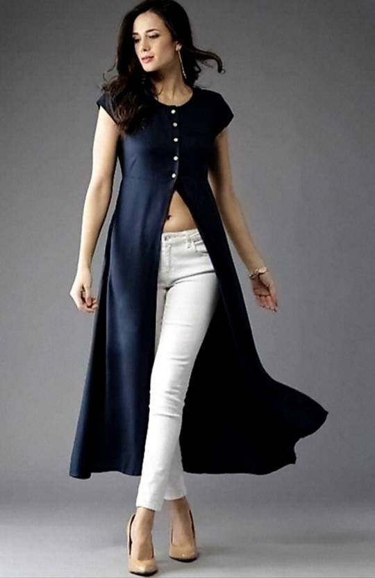 Sitara Women Solid Frontslit Kurta (Dark Blue)