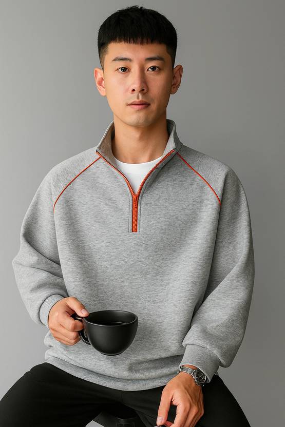 Stay effortlessly stylish and warm with this menβs half-zip sweatshirt, crafted for those who value comfort and modern fashion. Designed with a perfect balance of minimalist aesthetics and functional details, this sweatshirt is ideal for everyday wear β whether youβre heading out for a casual outing, gym session, or just relaxing at home. Made from high-quality fleece blend fabric, it offers exceptional softness, warmth, and breathability. The inner lining feels smooth against the skin, while the outer layer maintains its shape and texture, ensuring long-lasting durability even after multiple washes. The half-zip closure with a stand collar adds a versatile touch β zip it up for extra warmth or keep it slightly open for a laid-red vibe. Its light white shade with contrasting shoulder piping gives it a stylish and sporty look that pairs easily with joggers, jeans, or track pants. The ribbed cuffs and hem provide a secure fit and help retain body heat, making it perfect for cooler days. With its relaxed fit and classic silhouette, this sweatshirt ensures freedom of movement while maintaining a sleek appearance. Itβs a must-have addition to any modern manβs winter wardrobe β combining comfort, class, and practicality in one design.