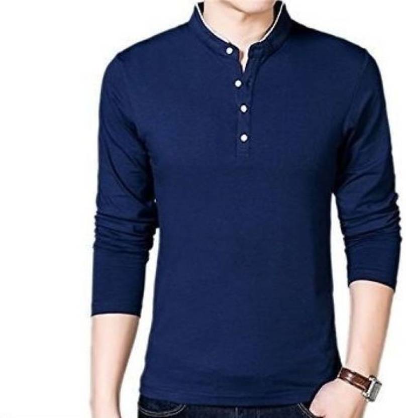 Six Star Solid Men Mandarin Collar Blue T-Shirt