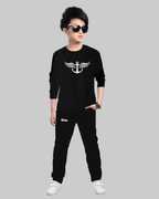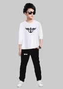 Boys Apparel Combo set T-shirt and pant are designed to be comfortable for active boys. They usually have a relaxed or semi-fitted fit that allows for ease of movement. These T-shirts are often made from soft and breathable AC5fabrics like cotton or a cotton. This ensures comfort and helps to keep kids cool and dry throughout the day.