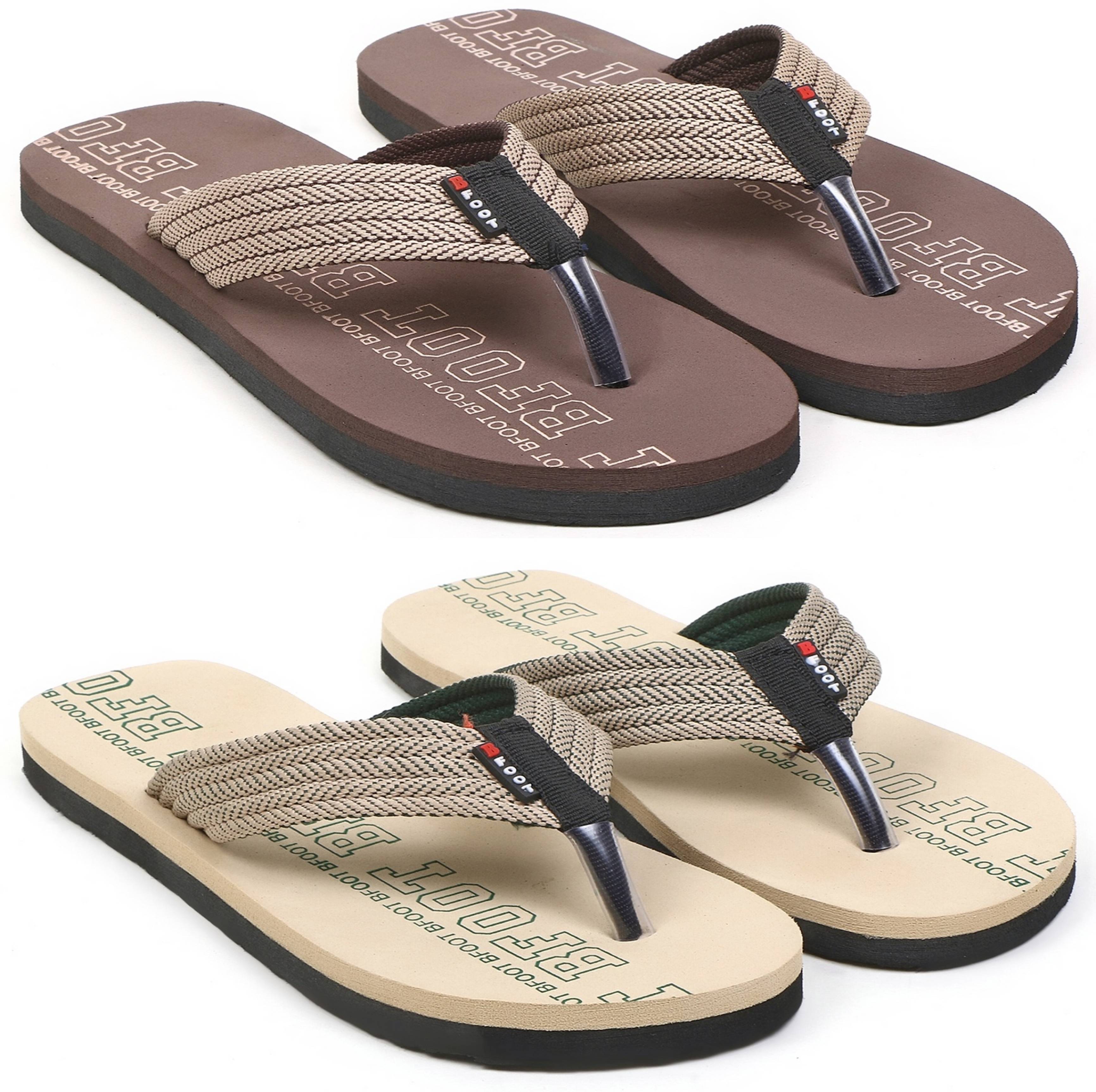 SIZEONE Men Slippers (Brown, Beige , 7)