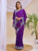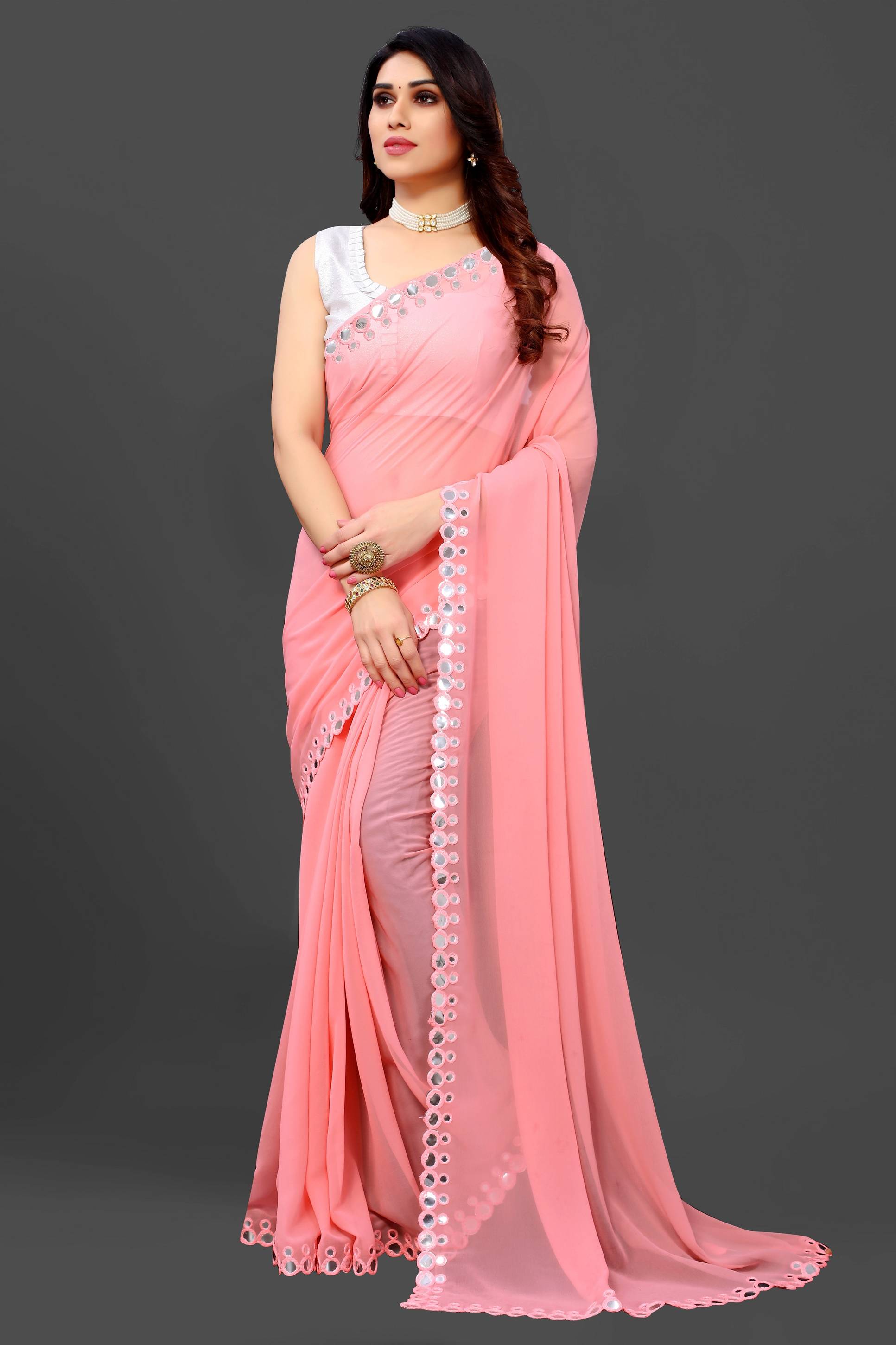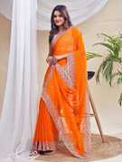 HESVI Embroidered Bollywood Georgette Saree (Red)