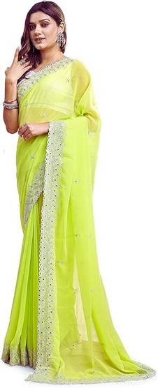 Embroidered, Solid/Plain Bollywood Georgette Saree (Green)