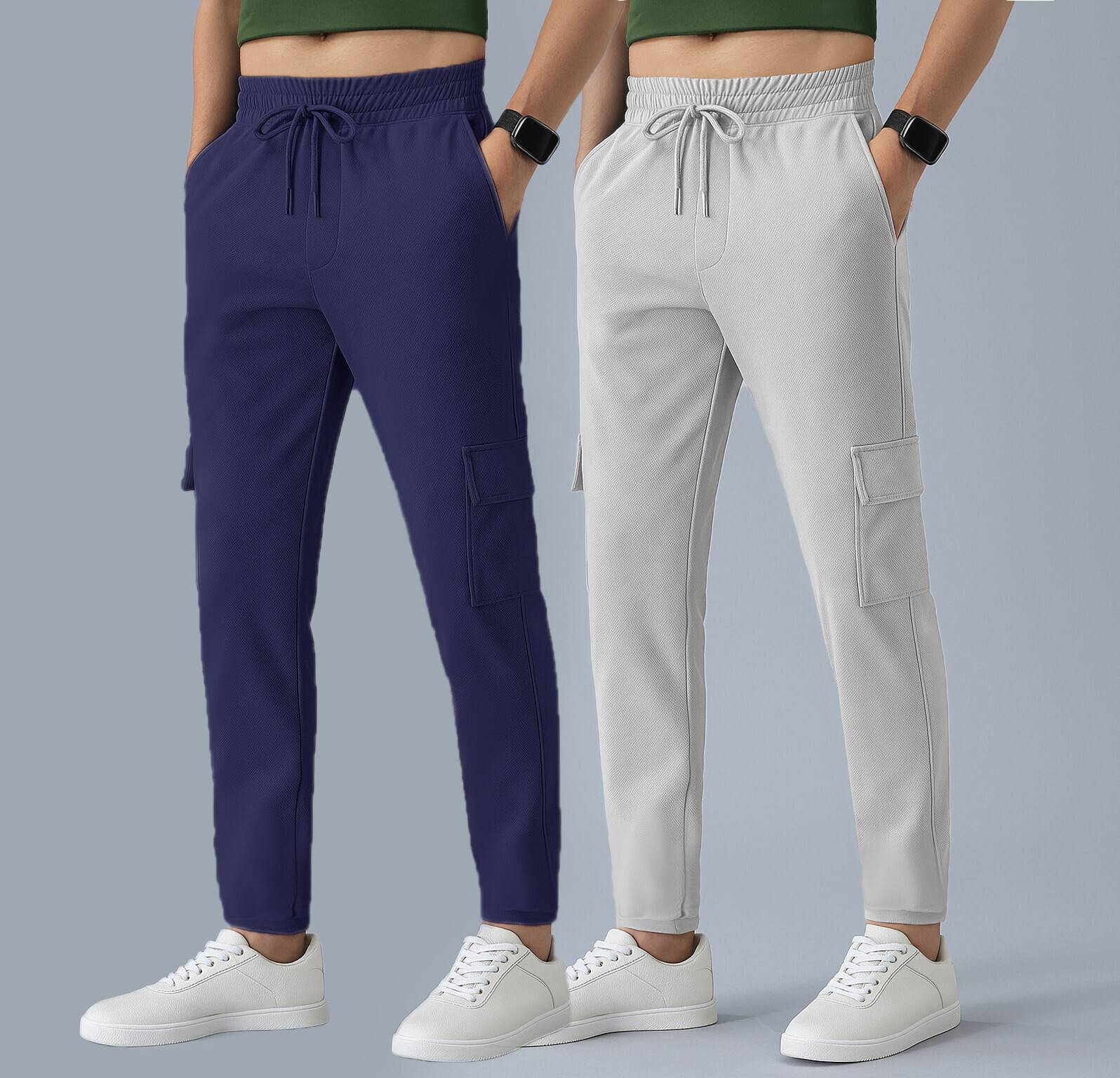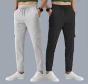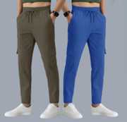 SK ClasyΒ Pack of 2 Men Solid Blue, Grey Track Pants