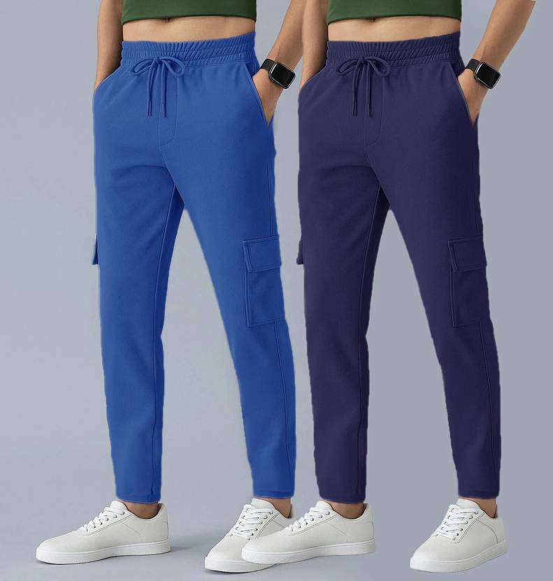 SK ClasyΒ Pack of 2 Men Solid Light Blue, Blue Track Pants