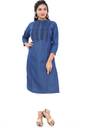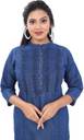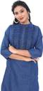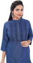 Women Solid Cotton Blend Straight Kurta (Dark Blue)