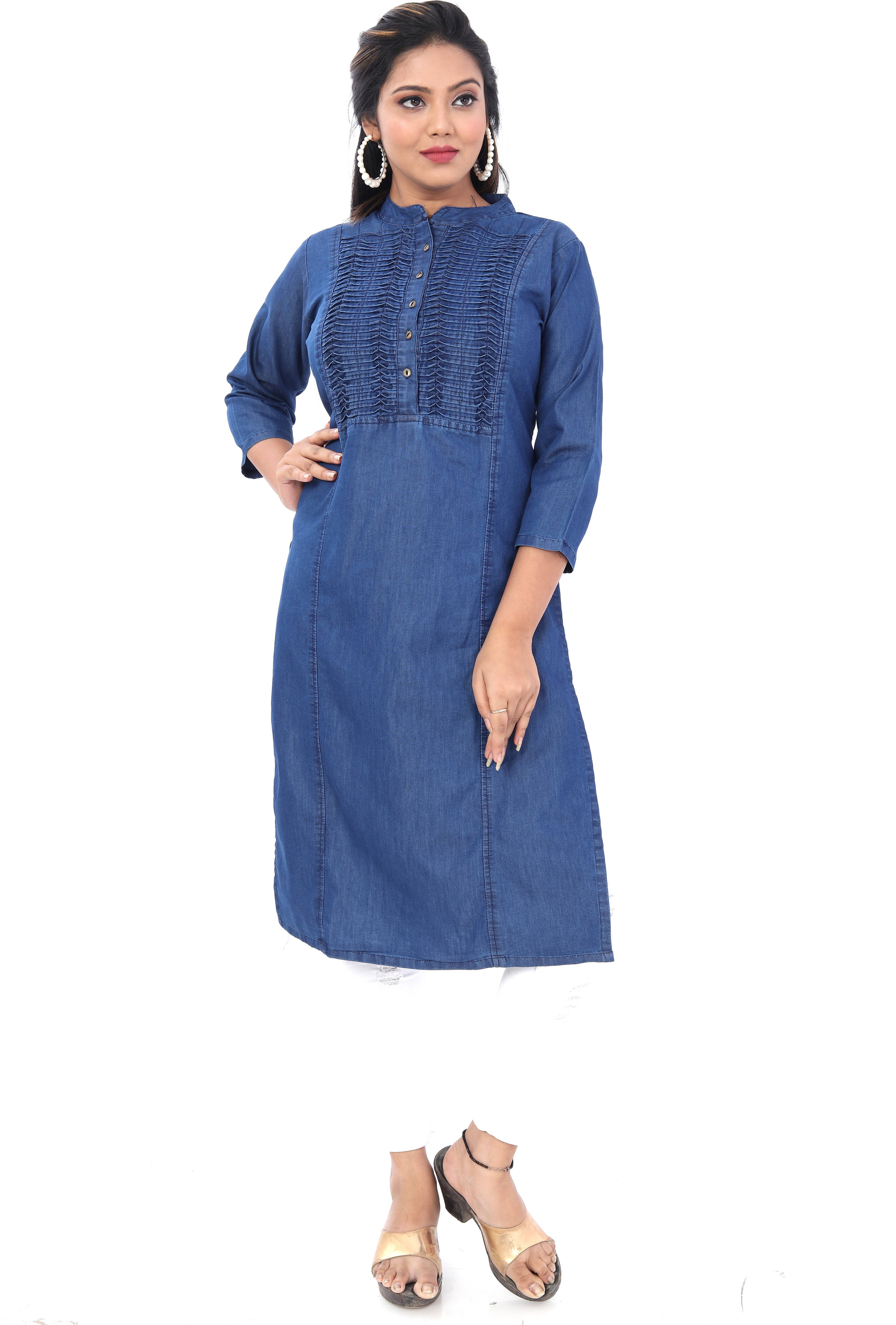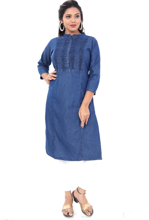 SK Creation Women Solid Straight Kurta (Dark Blue)