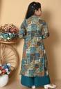 A key feature of this ensemble is the kurta-style jacket with 3/4 sleeves, which adds an extra layer of elegance and tradition. The jacket is designed with a flattering fit and falls gracefully over the dress, offering a stylish contrast to the flowing gown beneath. The 3/4 sleeves provide a perfect balance between elegance and practicality, making it suitable for both warmer and cooler seasons.