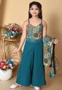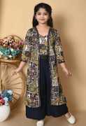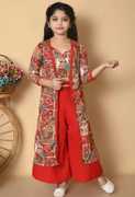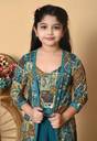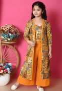 The rich, vibrant colors, often in shades like royal blue, deep red, or pastel pinks, make this dress an eye-catching choice for any festive or wedding occasion. Whether accessorized with delicate jewelry or left simple, this kurta-palazzo jacket set is the ideal choice to make your little girl stand out with grace and style.