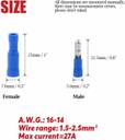 SK Electronics Insulated Male Female Bullet Wire Connector, Bullet Crimp Terminals Connectors ( MPD 2-156, FRD 2-156) Each 25 Pcs Pack of 50 Pcs Wire Connector (Blue, Pack of 50)