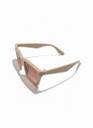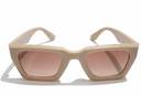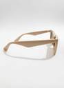 These unisex sunglasses feature a bold, architectural design characterized by a rectangular, slightly upswept frame that blends modern geometric shapes with retro influences. The smooth, matte cream finish of the chunky frames provides a versatile, neutral aesthetic that complements various skin tones. Finished with rose-gold gradient lenses, these sunglasses offer a warm tint and a high-fashion look suitable for both men and women in any setting.