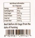 Energy 393kcal, Carbohydrates 85 g, Total sugar 39.16 g, Protein 5.47 g, Fat 3.6g, Crude fibre 17.64g