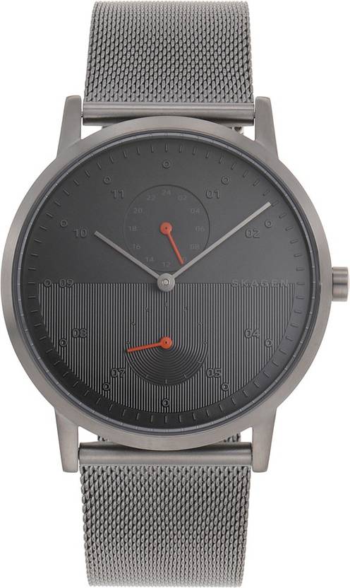 Uncomplicated and simple pieces are a favourite amongst all. That is exactly what makes this steel watch from the House of Skagen for men stand out as an epitome of simplicity and minimalistic design. The grey tone multi-function dial has dash markings at all hour and two hand movements is beautifully arranged in an uncluttered fashion. The gunmetal mesh bracelet strap, which is fastened by safety mesh buckle, adds more dimension and facet to the piece.