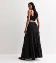 its plain solid black color skirt in reyon fabric 140 g . it has 3meter gear 39 inch length full length .it comes elastic waistband with nara for suitable fiting and it made by s-kart so you can trust on qulity