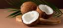 A coconut is the edible fruit of the coconut palm (Cocos nucifera), a tree of the palm family. Coconut flesh is high in fat and can be dried or eaten fresh or processed into coconut milk or coconut oil. The liquid of the nut, known as coconut water, is used in beverages.