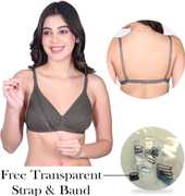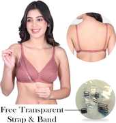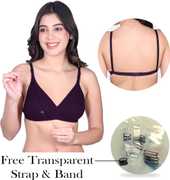 SKDREAMS Wine Cotton Blend Seamed Non Padded Medium Coverage Non-Wired Multiway Transparent Strap Back Closure Women Everyday Bra