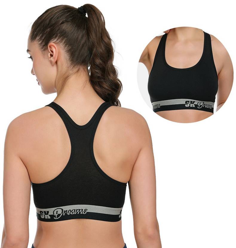 SKDREAMS Black Cotton Spandex Everyday Wireless & Non Padded Seamless Racer back Sports Shaper Bra for Women | Soft Cup & Full Coverage Easy to Slip – On Sports Bra