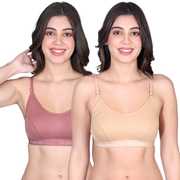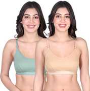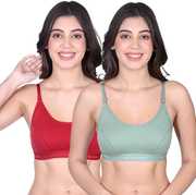 SKDREAMS Multicolor Cotton Blend Seamed Non Padded Non-Wired Medium Coverage Women Pack of 2 Sports Bra Combo