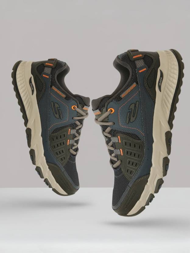 Explore the great outdoors in long-lasting comfort with Skechers Arch Fit® Escape Plan. This outdoor trail design features a water-repellent treated leather and mesh upper with a lace-up front and a removable Arch Fit® insole.