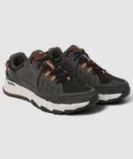 Explore the great outdoors in long-lasting comfort with Skechers Arch Fit® Escape Plan. This outdoor trail design features a water-repellent treated leather and mesh upper with a lace-up front and a removable Arch Fit® insole.