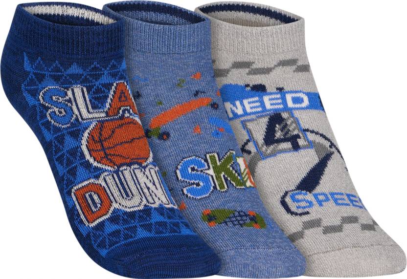 Dark blue patterned Ankle-length socks, has a ribbed mouth and flat toe seam Blue & orange colored patterned Ankle-length socks, has a ribbed mouth and flat toe seam Grey patterned Ankle-length socks, has a ribbed mouth and flat toe seam