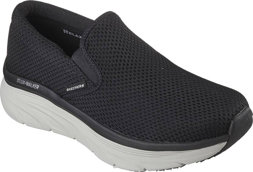 Slip into a comfortable ride in the Skechers Relaxed Fit: D'Lux Walker. This lightweight slip-on was made for walking, with a breathable athletic mesh-knit upper and a Stretch Fit sock-like design that ensures a snug fit. A well-cushioned dual-density midsole provides a responsive ride through every stride. An Air-Cooled Memory Foam insole ensures all-day comfort and cushion making this sneaker the perfect walking shoe when combined with a flexible rubber traction outsole.