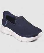 Step-in to convenient walking comfort and cushioning wearing Skechers Hands Free Slip-ins™ GO WALK® FLEX - Relish. This laceless design features a Skechers Slip-ins™ molded pop-up heel panel, a breathable athletic mesh upper, a unique Comfort Pillow™ and lightweight ULTRA GO® cushioning.