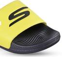Post-run recovery gets upgraded with more comfort and athletic style in the Skechers Hyper Slide - Deriver sandal. It features a smooth synthetic upper with HYPER BURST cushioned midsole and a Goodyear performance outsole.