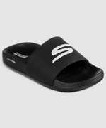 Post-run recovery gets upgraded with more comfort and athletic style in the Skechers Hyper Slide - Deriver sandal. Features a smooth synthetic upper with HYPER BURST cushioned midsole and Goodyear performance outsole.