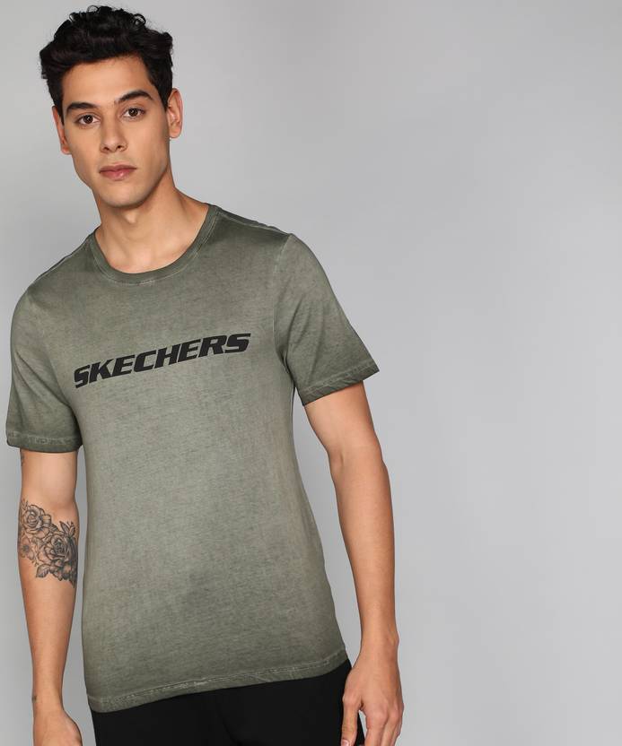 Skechers Printed Men Crew Neck Green T-Shirt