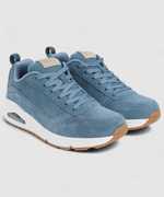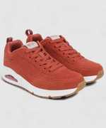Classic Air Cushioned Style Meets Updated Comfort In The Skecher Street Uno Shoe. Smooth Leather Upper In A Lace Up Classic Jogger-Style Sneaker With Stitching And Perforation Accents. Air Cooled Memory Foam Insole, Visible Air Cushioned Midsole.