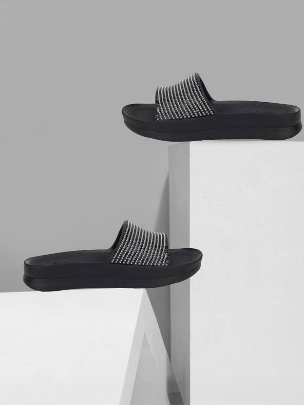 Pearl Rhinestone Molded Slide-Anti-Odor, Hanger Optional, Dual-Density, Luxe Foam