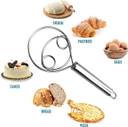 Danish Dough Whisk Food Grade 304 Stainless Steel Hand xer Bread Whisk 8.5 Inch Danish Whisk Dough Scraper Baking Tool for Bread Pastry or Pizza Dough Silver