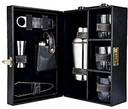 SKITCH 3 Glasses Mega Bar Set Portable Leatherette Briefcase 7 - Piece Bar Set (Wooden, Stainless Steel)