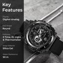 Featuring 50M water resistance, this watch is ideal for swimming, water sports, and all-weather use. It's crafted to handle the elements while keeping you on track with its versatile functions. The sports watch with thermometer allows you to measure temperature on the go, while the stopwatch and countdown timer help you time your workouts and activities with precision. Additionally, the built-in alarm ensures you never miss a beat.