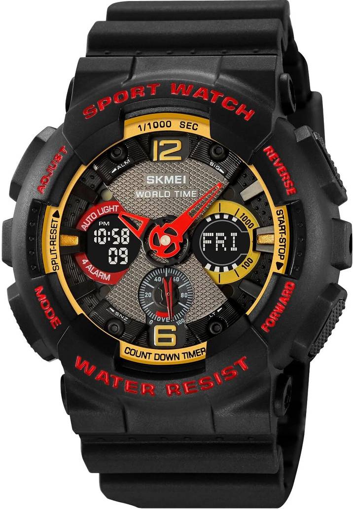SKMEI Digital Sports Watch – Model 2118—a multifunctional, waterproof, and shock-resistant timepiece built for action. Whether you’re hitting the gym, running, swimming, or exploring the outdoors, this tactical watch for men keeps up with your active lifestyle.Key Features:? Digital Sports Watch for Men – Designed for both casual wear and professional sports.? Waterproof 50M – Wear it confidently while swimming or working out.? LED Backlight for Night Visibility – Read time easily in dark conditions.? Multifunctional Design – Includes stopwatch, countdown timer, four alarms, world time, daylight saving mode, and 12/24-hour format.? Shock-Resistant & Rugged – Built to withstand extreme activities.? Large Display & Comfortable Fit – 51.3mm case width, lightweight at 64.6g, and durable ABS+TPU case with a TPU strap.This best sports watch for running and swimming is perfect for men who need a durable, high-performance timepiece that matches their adventurous and active lifestyle.