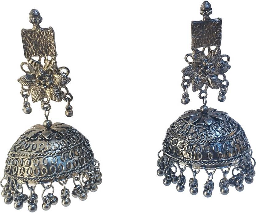 SKS JI COLLECTIONS Beautiful Silver Black Oxidised Long Ghungroo Jhumki Earrings German Silver Jhumki Earring