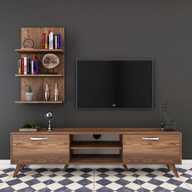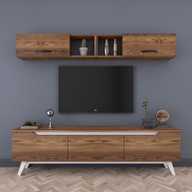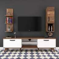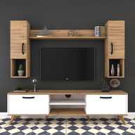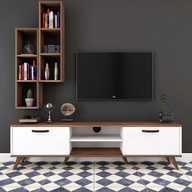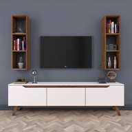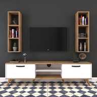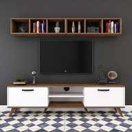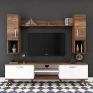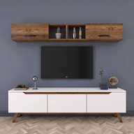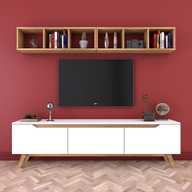 Sku Craft Engineered Wood TV Entertainment Unit (Finish Color - White & Walnut, DIY(Do-It-Yourself))