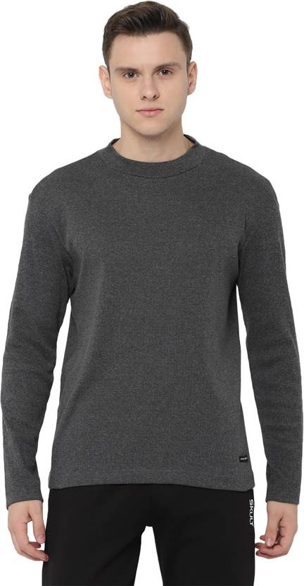 SKULT by Shahid Kapoor Self Design Men Round Neck Grey T-Shirt