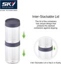 The PET plastic container set is made of 100 percent food-grade plastic that helps you store, pulses, spices and more in a safe way. These containers are Bisphenol A (BPA) free, thus keeping you safe from health hazards. Therefore, these container set help you make a healthier lifestyle choice. This containers are odor-free, so you don't have to worry about the spices and cereals smelling different. The airtight seal completely locks the container and conserves the nutritional value of the stored items. Different sizes are available to store variety of spices and pulses. You can Store a variety of food items like cereals, pulses, spices, dry fruits, snacks, salt, sugar, coffee, tea and much more in these canisters. The superior oxygen barrier does not allow any air circulation into the containers, hence keeping the food items from getting oxidized. Stackable Design for Easier Storage. In addition to this, they can be stacked one above the other to save a lot of closet space. Featuring a shatter-proof design, these containers are extremely durable.