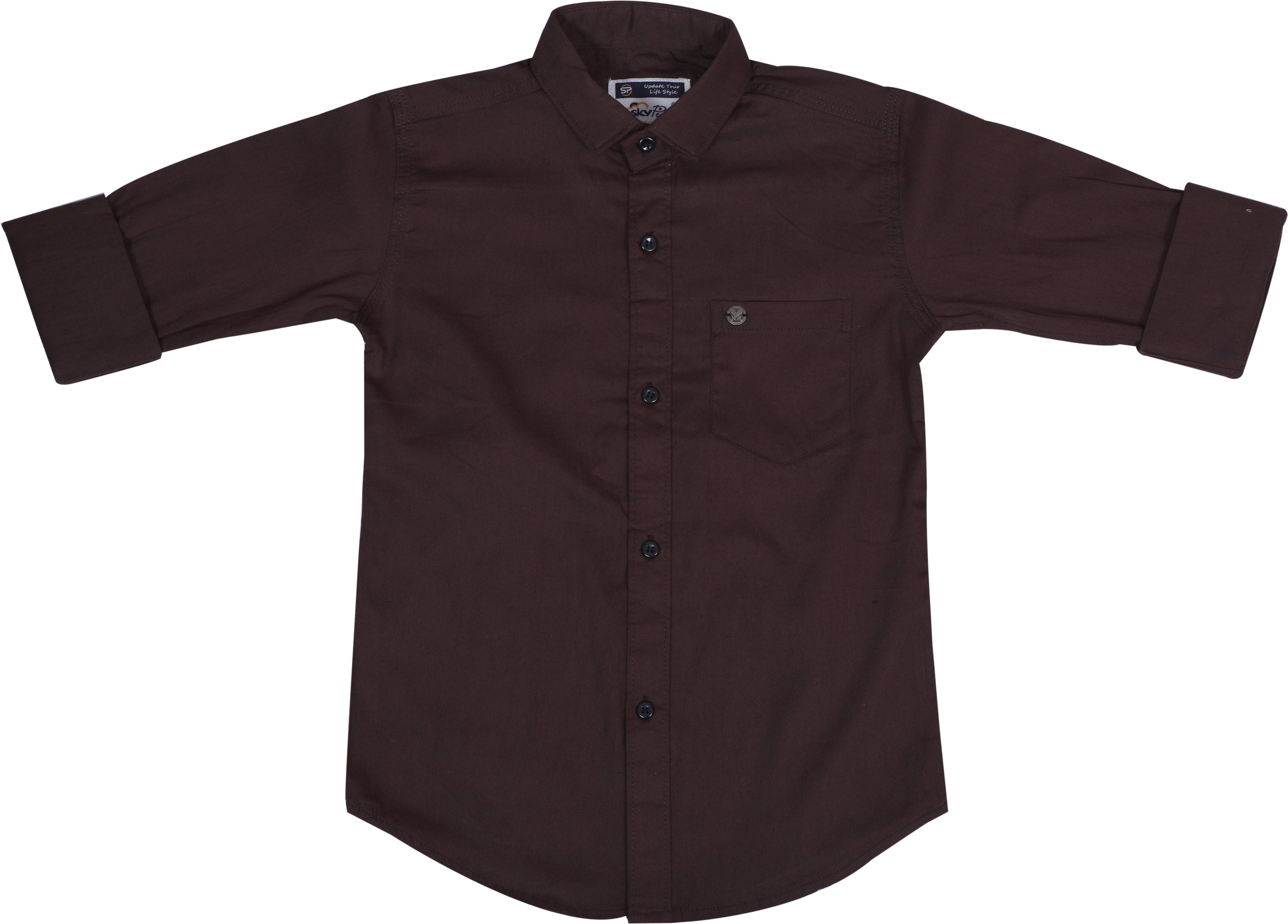 The SKY PEARL Boys Solid Casual Brown Shirt offers a blend of sophistication and versatility. Crafted with meticulous attention to detail, this shirt features a rich brown hue that adds warmth and depth to any outfit. Made from premium-quality fabric, it ensures comfort and durability, perfect for all-day wear. The classic design includes a button-down collar, adding a touch of refinement suitable for various occasions, from casual gatherings to semi-formal events. Whether paired with jeans for a laid-back look or with trousers for a more polished ensemble, this shirt effortlessly enhances the young gentleman's style, making it a wardrobe essential.