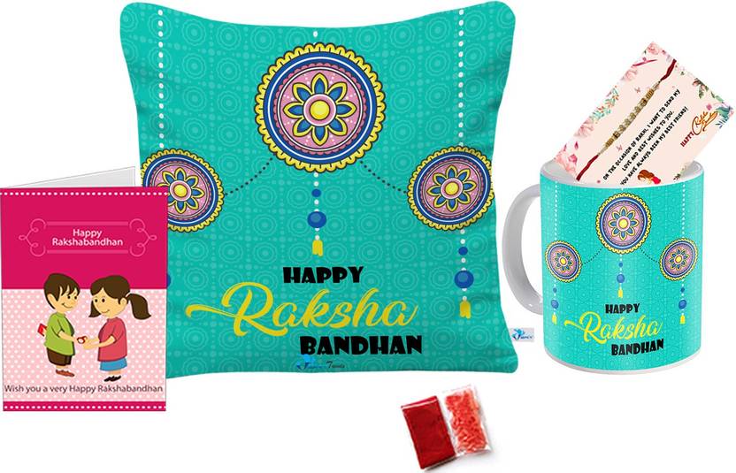 Rakhi, Cushion, Mug, Greeting Card, Chawal Roli Pack