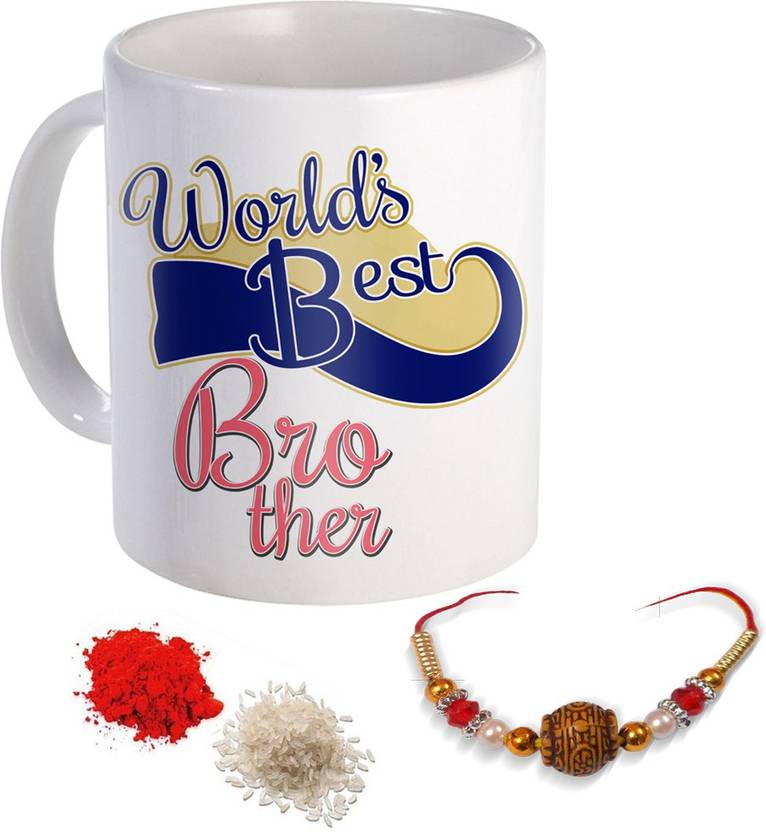 Best Gift For Brother On This Raksha Bandhan. Coffee Mug With Fancy Rakhi And Chawal Rauli Best Combination Gift For This Rakshabandhan For Your Brother. Remembering Gift For Brother On Rakshabandhan.