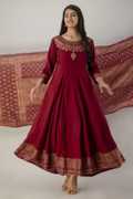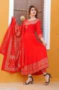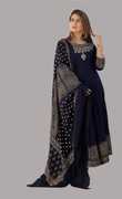 SkyAsia Women Printed Anarkali Kurta (Dark Blue)