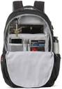 3 compartments with 1 front pocket and both side bottle pockets. 17" laptop compatible, protection in main compartment. Organiser with key holder. Rain cover access zip at the bottom of the backpack with a hook on top so that rain cover does not slip off.
