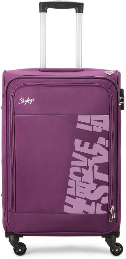 Stylish Design: This luggage bag is a perfect fit to sport your airport looks. Its subtle yet sharp branded graphics gives it a sporty look. It comes with 4 trendy colors for you to choose from - Green, Purple, Blue and Black.The unisex design makes it suitable for both men and women.;Pack more:A zipped pocket on the front side is ideal for keeping necessities for quick access along with a spacious main compartment and convipack that lets you pack more.;360 degree wheeling: This trolley bagcomes with 4-wheels which offers smooth 360 degrees rotation for effortless mobility in any direction. It also comes with a push button trolley which makes it easy to carry on various terrains.;Security: The bag comes with a number lock for your safe travel with resetting code whenever necessary. Without a key, luggage can be locked and unlocked using a number code.;Durability: It is made from polyester fabric which is highly durable, resistant to stretching and tearing. This fabric is also primarily lightweight in nature which lets you pack more without exceeding the weight restrictions