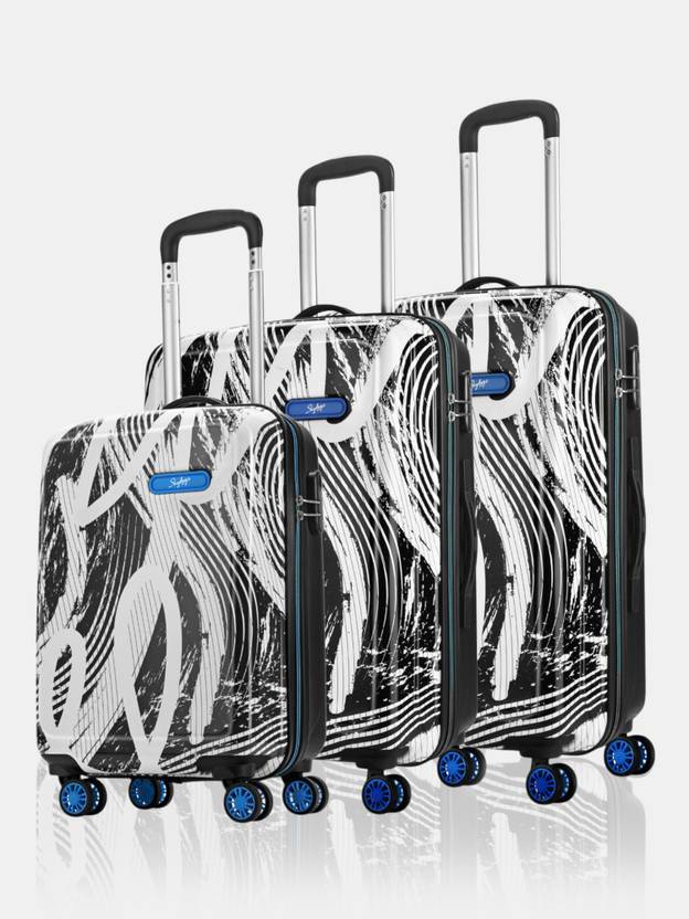 STYLISH AND LIGHTWEIGHT: Move in style with Skybags Stroke, a premium hard luggage trolley with a trendy print that ensures your airport looks are on point. This lightweight luggage is made of durable and scratch resistant ABS and PP material which makes it sturdy, waterproof and impact resistant.EASY TO MOVE: With ample storage space to accommodate your belongings, this stylish yet sturdy trolley bag is equipped with smooth 360 degree dual wheels and an adjustable trolley handle to help you travel with ease.ENHANCED SECURITY: The 3-digit inbuilt, resetable combination lock and premium zipper ensure your belongings are safe while you embark on new adventures. AMPLE STORAGE SPACE: Pack more with spacious multi compartments and compression straps which help save space.INTERNATIONAL WARRANTY: This trolley is equipped with 5 Year International Warranty against manufacturing defects. Proudly made in India, it has undergone stringent quality tests to make your travels hassle free.