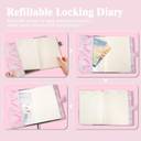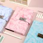 HOW TO SET THE CODE LOCK: You will get a instruction to help you set up password combinations to protect your privacy, no page falling, diary with lock for girls is suitable for both travel diary and notebook. If you cannot open the code lock or forgot your password, Please Contact us.600 PASSWORD COMBINATIONS: The Vintage journal with lock for men has a trace of sense 0-9 Three-digit lock, with 1000 password combinations which can be freely set with your own password to protect your privacy and secrets.REFILLABLE EYE PROTECTION PAGES: Refillable inner core with no fluorescent agent, don't worry to waste beautiful covers and protect your eyes. A5 size: 8.5 *5.7 inches which is bigger than the average password diary. Locking diary has 192 pages(96 sheets) lined pages and we choose luxuriously thicker smooth paper with no ink infiltration.WATERPROOF NOTEBOOK : The pen is our giveaway for you. The journal with lock for women also has a leather pen holder, which is able to hold the pen firmly. You can record your life anytime, anywhere. And a ribbon bookmark allow you to find important information more quickly. The A5 marble notebooks for girls with dreamy PU leather cover is soft and waterproof which can win girl's heart. Locked journals is suitable as a nice gift for women and girls, students, family and kids.GUARANTEE: If you have any questions or are not satisfied with our products, please contact us, .If you have any questions about our Journal Notebook, contact us through Amazon message, we will reply as soon as possible and give you a satisfied answer. Any messages from you is necessary for our growth.