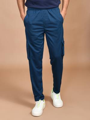 Men Solid Light Blue Track Pan...