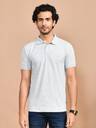 Men Solid Polo Neck Cotton Blend White T-Shirt